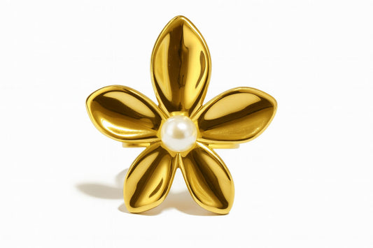 Anillo flor dorado con perla