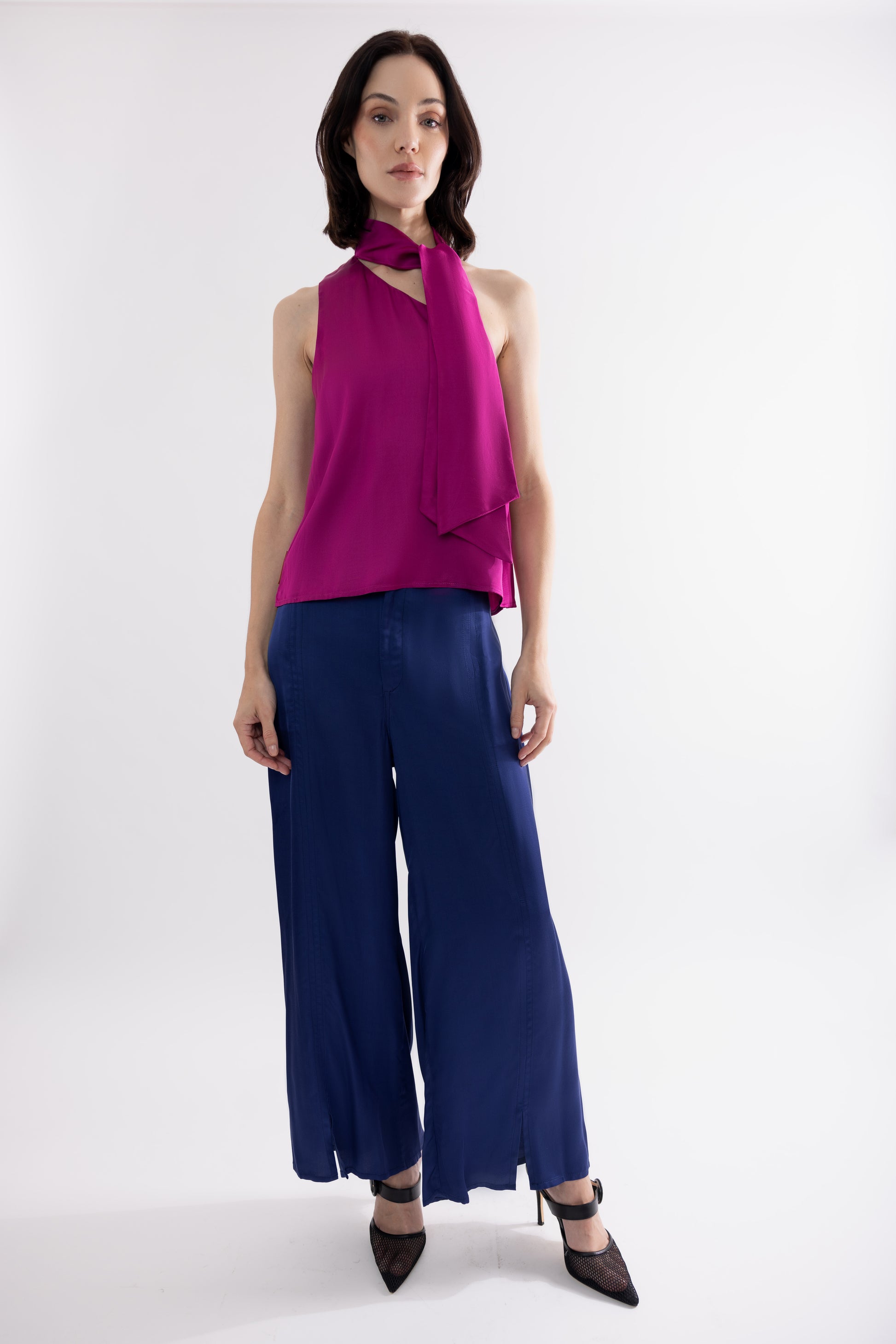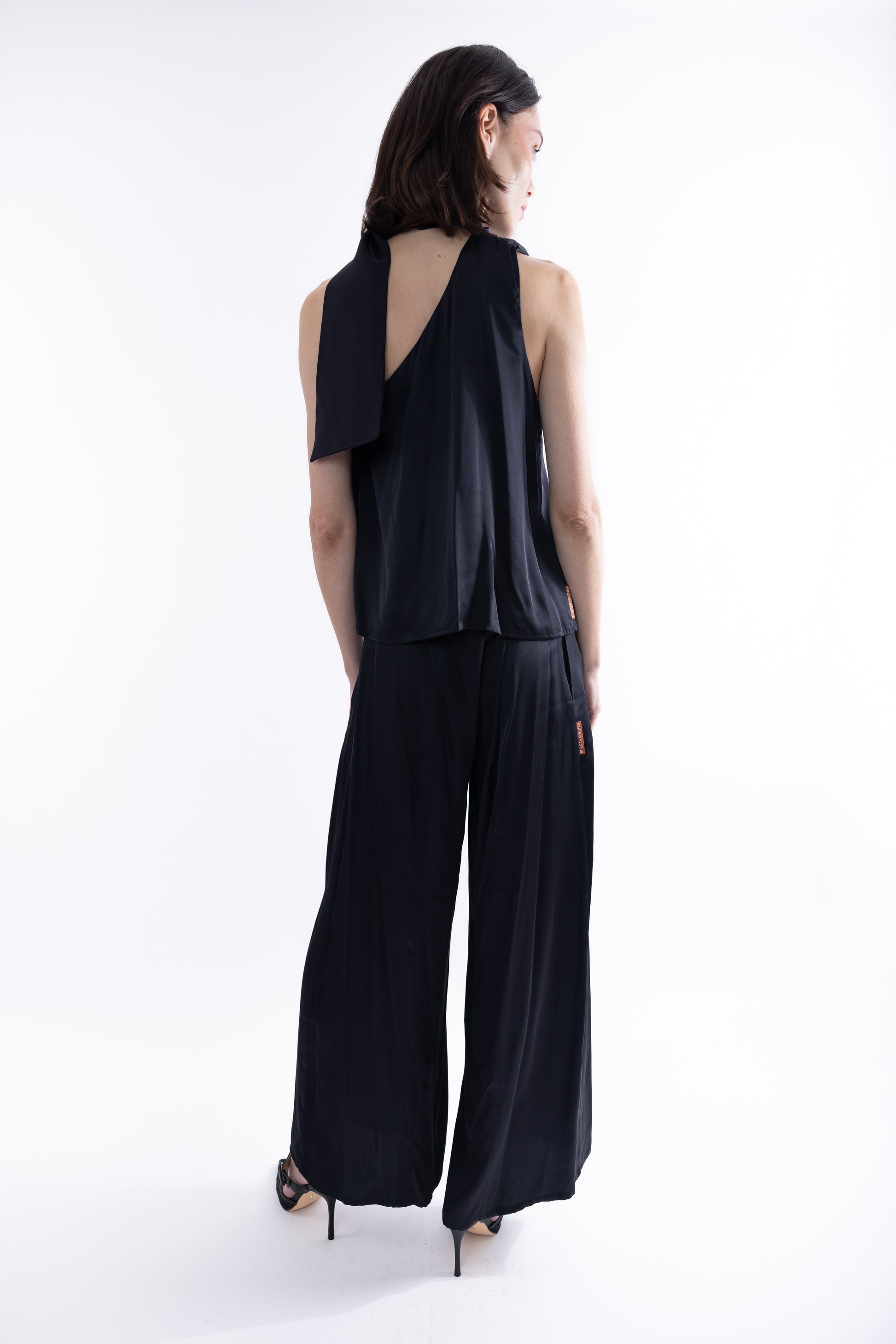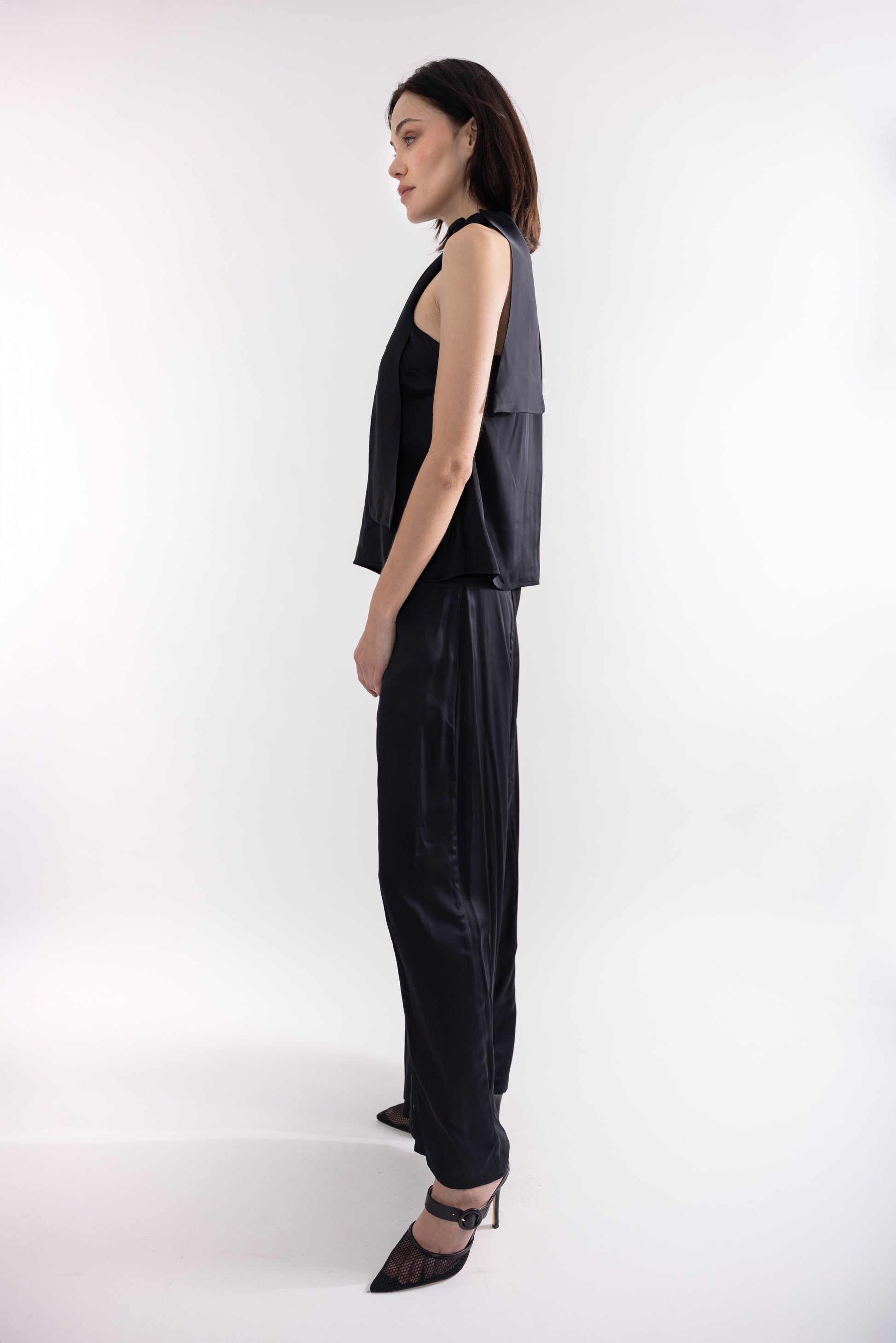 Top de una manga, con lazo en el cuello.